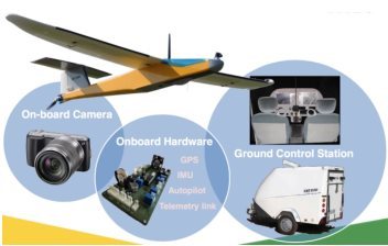 7) 系统包括:固定翼无人机、RGB 彩色镜头、地面控制站、无线发射与接收系统、