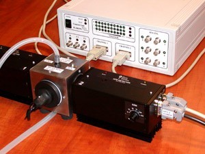 仪器的核心结构是一个包含液体样品的特氟伦积分球。积分球的光学端口是3组LED光源和一个雪崩光电二极管检测器。作为备选,仪器可以增加一个信号检测器来捕获另一个定制波段的荧光瞬变。测量光闪、单次翻转光闪、光化光都是455 nm的蓝光。每一组光源的强度和持续时间都可以由软件独立控制。特殊要求